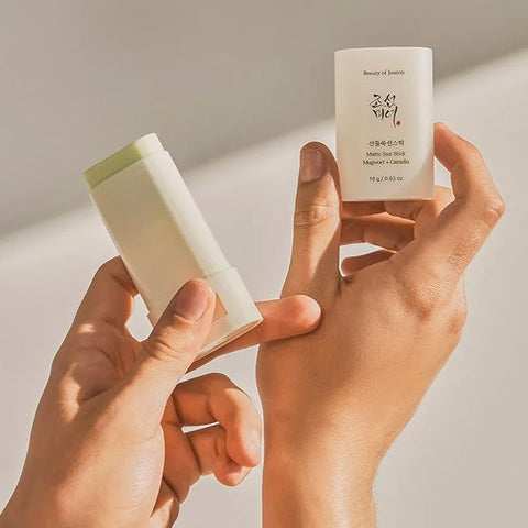 Meet the Beauty of Joseon Matte Sun Stick — a sebum-regulating sunscreen that leaves a velvety matte finish without any greasy residue. Its formula combines porous silica powder to absorb excess oil with mugwort and camellia extracts to soothe and hydrate the skin.