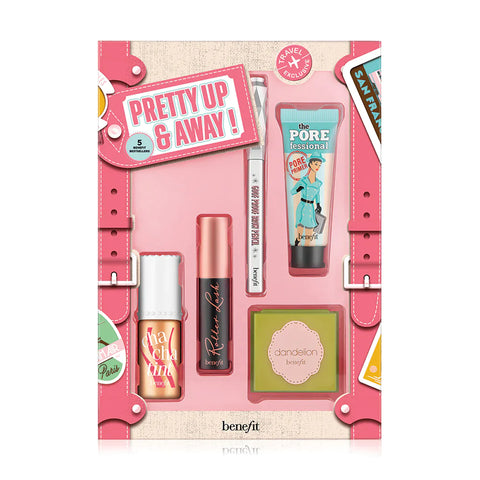 Streamlined beauty, no compromises. The Benefit Pretty Up & Away! Set packs five iconic formulas into one sleek case. Brow definition, a smooth base, a pop of colour, and lash volume – everything you need for a complete look.