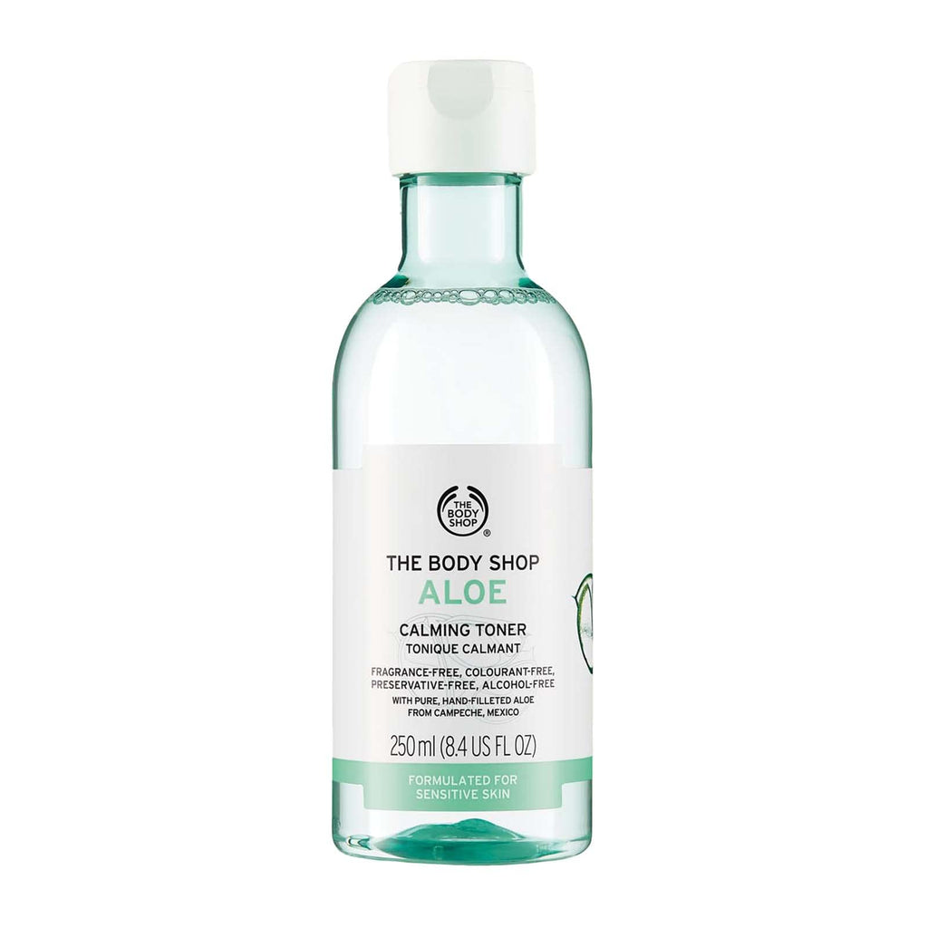 After cleansing, skin needs a reset. The Body Shop Aloe Calming Toner delivers a cool, alcohol-free splash that erases last traces of impurities without stripping. Community Trade aloe vera from Mexico provides the calming core—softening, balancing, preparing.