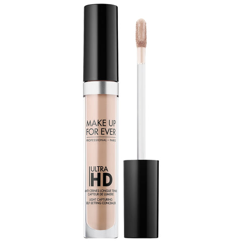 The Ultra HD Self-Setting Concealer from Make Up For Ever delivers medium coverage with a lightweight feel. Its advanced formula includes coated pigments that adapt to the skin and set instantly, leaving a natural satin finish that resists creasing for up to 12 hours.