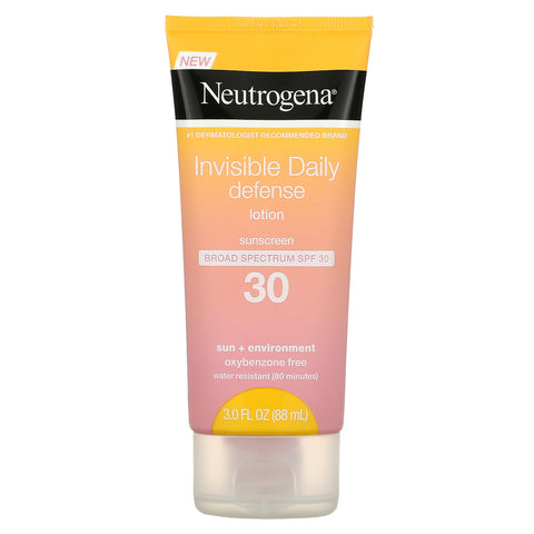 Neutrogena Invisible Daily Defense Lotion Sunscreen SPF30 is a featherlight formula that shields skin without feeling like sunscreen. The 88ml lotion absorbs in seconds, leaving a barely-there matte finish that works under makeup or alone.
