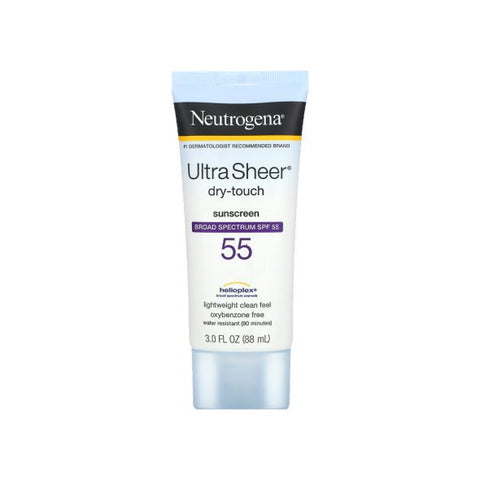 Don’t let sunscreen feel like a layer. Neutrogena Ultra Sheer Dry Touch SPF 55 goes on invisibly, drying to a matte, velvet finish—no shine, no stick, no white cast.