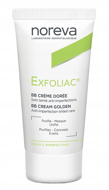 Noreva’s Exfoliac BB Cream in Doree Golden delivers a luminous, natural finish while targeting imperfections. This multitasking tinted moisturiser combines light coverage with active ingredients to soothe, mattify, and smooth the skin.