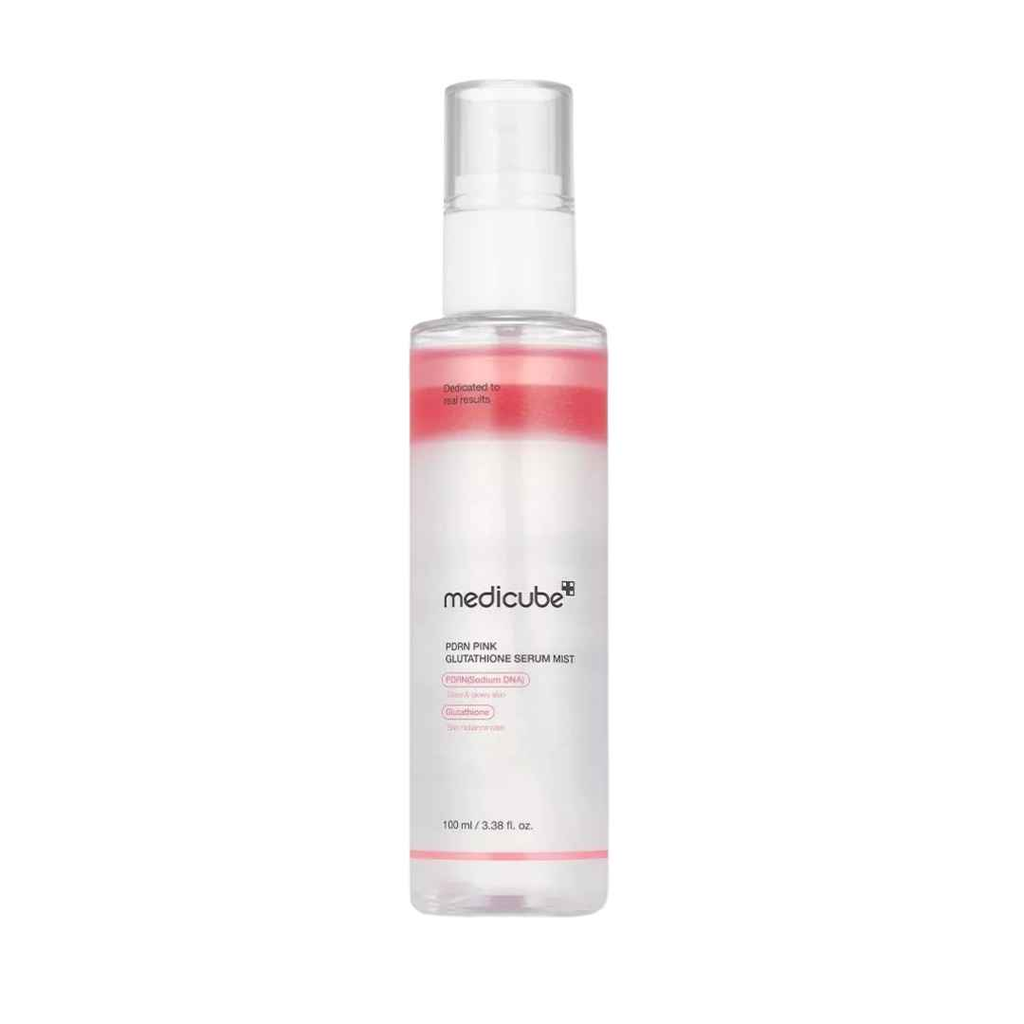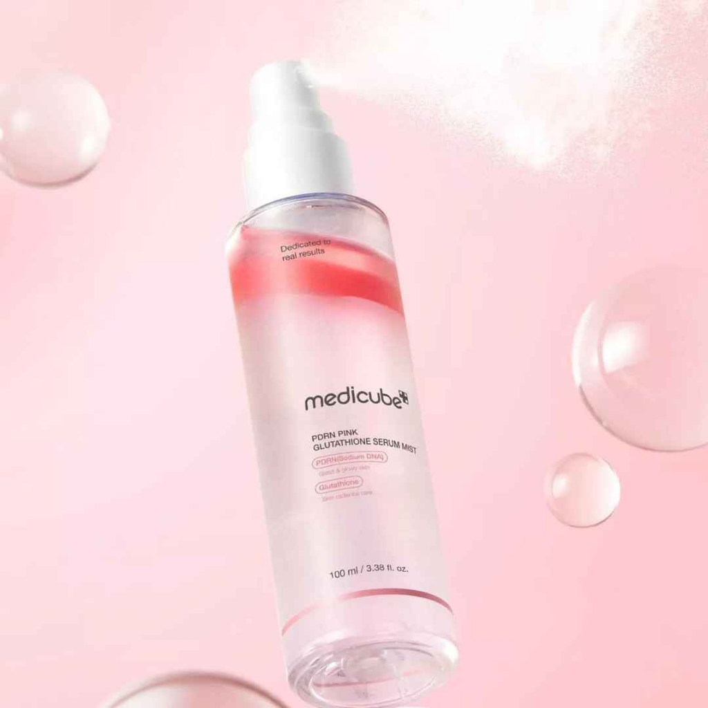 Spritz on a cooling veil of hydration with the PDRN Pink Glutathione Serum Mist. The ultra-fine mist reduces skin surface temperature by up to 2.8°C, offering instant relief and a refreshed feeling.