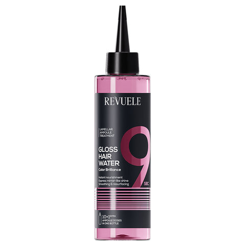 Revuele’s Gloss Hair Water is a liquid conditioner engineered for colour-treated hair. One quick 9-second rinse delivers 9 times more shine — no exaggeration. The lamellar formula glides over strands, sealing the cuticle to lock in colour and reflect light.