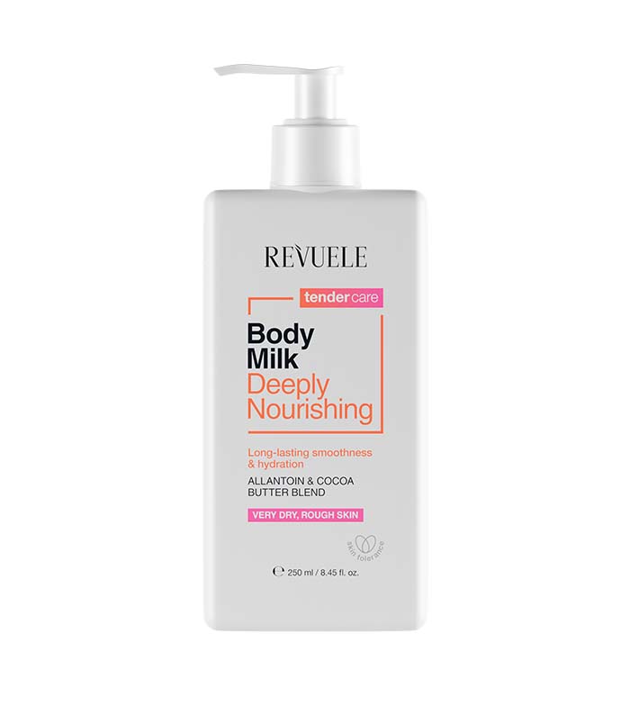Revuele’s Tender Care body milk redefines your shower ritual. Three actions compress into one step: a cleansing gel that regulates sebum, a micro-scrub that refines pores, and a clay mask that calms shine.