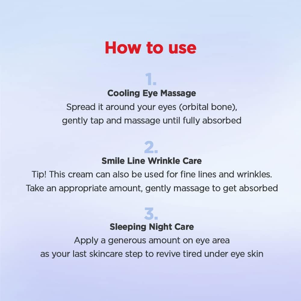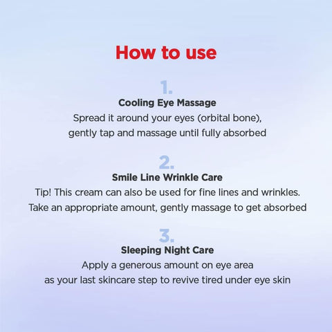 Apply a pearl-sized drop each morning and night. The cooling sensation helps reduce under-eye bags, and the gel absorbs almost instantly — no residue, just a fresher look.